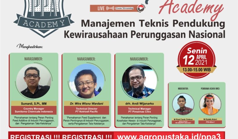 Agropustaka.id, Kabar. PoultryPreneur Academy (PPA) Seri Ke-2 yang diselenggarakan oleh Indonesia Livestock Alliance (LLA) dan Badan Pengembangan Peternakan Indonesia (BPPI), dengan bekerja sama dengan Ikatan…